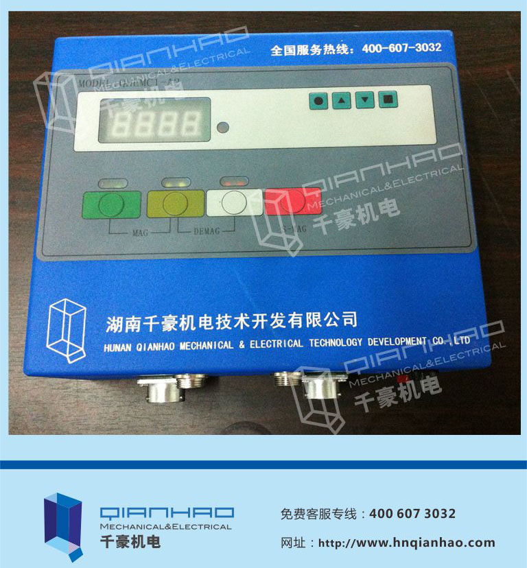 具有安全保護功能:可通過解鎖輸入觸電信號和充磁狀態輸出觸點實現聯動,設有可調的充(退)磁電流(或短路)保護與欠流(或斷路)報警功能;所有設置參數與運行狀態均可通過主機面板實行監控,并具有電源頻率自動跟蹤功能;所有1-8個通道(需要更多通道可根據用戶要求定制),每個通道可按要求設置為開啟或關閉,通過退磁或消磁操作,能有效除工件表面剩磁。